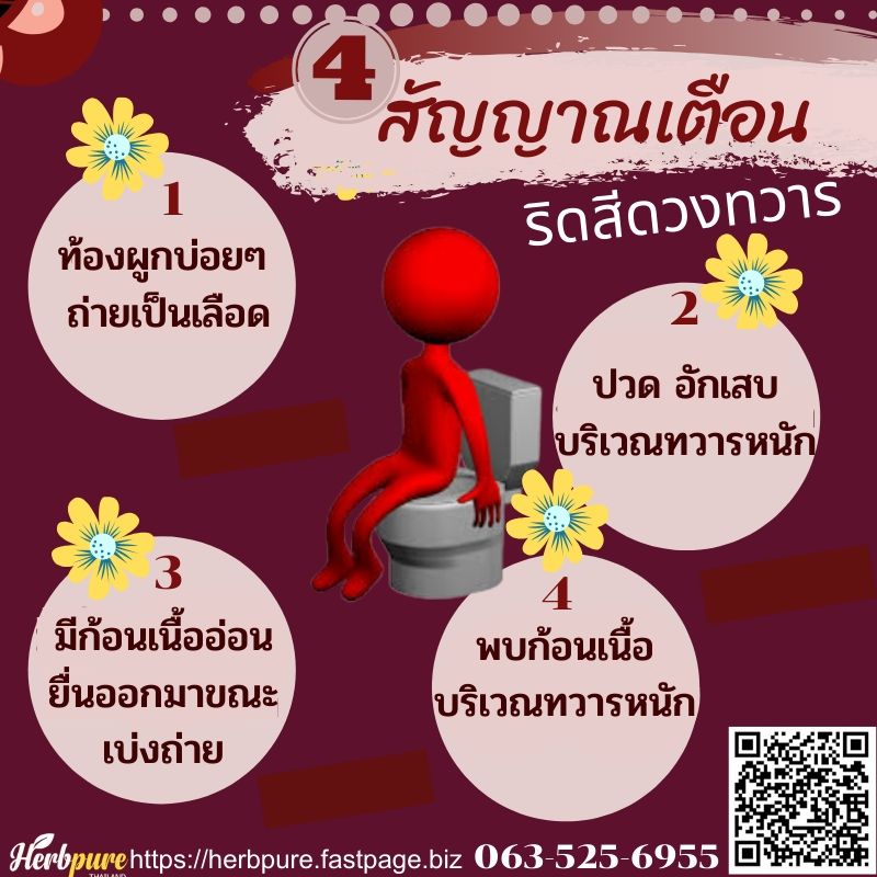 ถ่ายมีเลือด ปวดอักเสบ เป็นๆหายๆ มีติ่งยื่นออกมา ทั้งรำคาญ ทั้งทรมาน จัดการทุกปัญหาริดสีดวงอย่างตรงจุดที่ต้นเหตุ ด้วยวิถีธรรมชาติ ปราศจากสเตียรอยด์ และสารเคมีตกค้าง ฆ่าเชื้อที่ฝังตัวให้หมดฤทธิ์ได้อย่างถาวร ติ่งสลาย หายอักเสบ เป็นมิตรต่อสุขภาพ ปราบราบคาบทั้งริดสีดวงภายนอก และริดสีดวงภายใน เป็นการแก้ปัญหาที่ต้นเหตุอย่างยั่งยืน จึงไม่กลับมาเป็นอีก